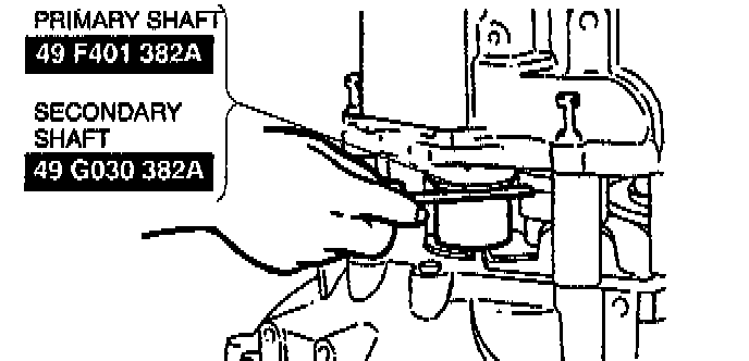 6. Set the SSTs (49 F401 382A and 49 G030 382A) for the primary and secondary shaft in the, clutch housing.