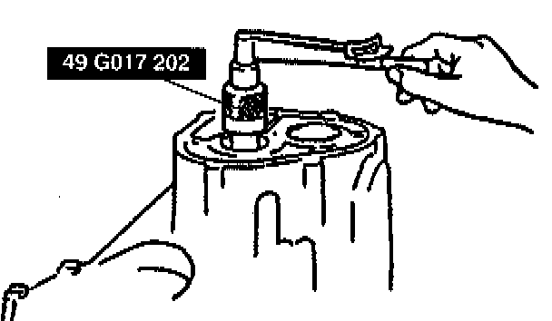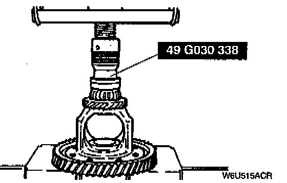 2. Turn the SST (49 T027 001) with a torque wrench. Adjust the SST (49 G030 381) with the SST (49 F401 385) until the specified preload is obtained.