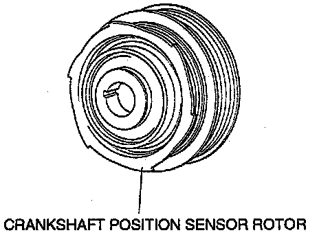 CAUTION: The crankshaft position sensor rotor is on the rear of the pulley, and can be damaged easily.