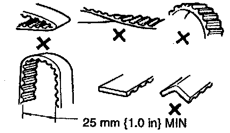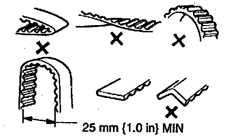 CAUTION: The following will damage the belt and shorten its life; Forcefully twisting it, turning it inside out, bending it, or allowing oil or grease on it.