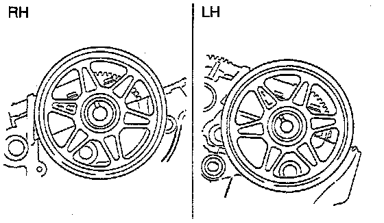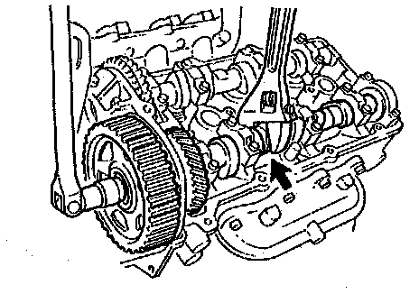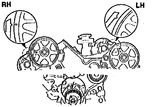 9. Verify that all timing marks are correctly aligned. If not, remove the timing belt and repeat the procedure from Timing belt auto tensioner.
