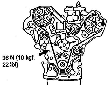 10. Check the timing belt deflection. If it is incorrect, replace the auto tensioner.