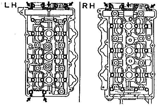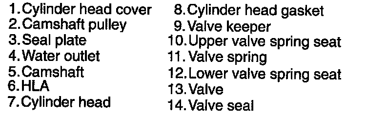 1. Loosen the cylinder head bolts in two or three steps in the order shown.