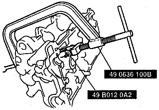 CAUTION: When removing the bolt, hold the tensioner so that the bolt holes are aligned, otherwise the threads can be damaged.