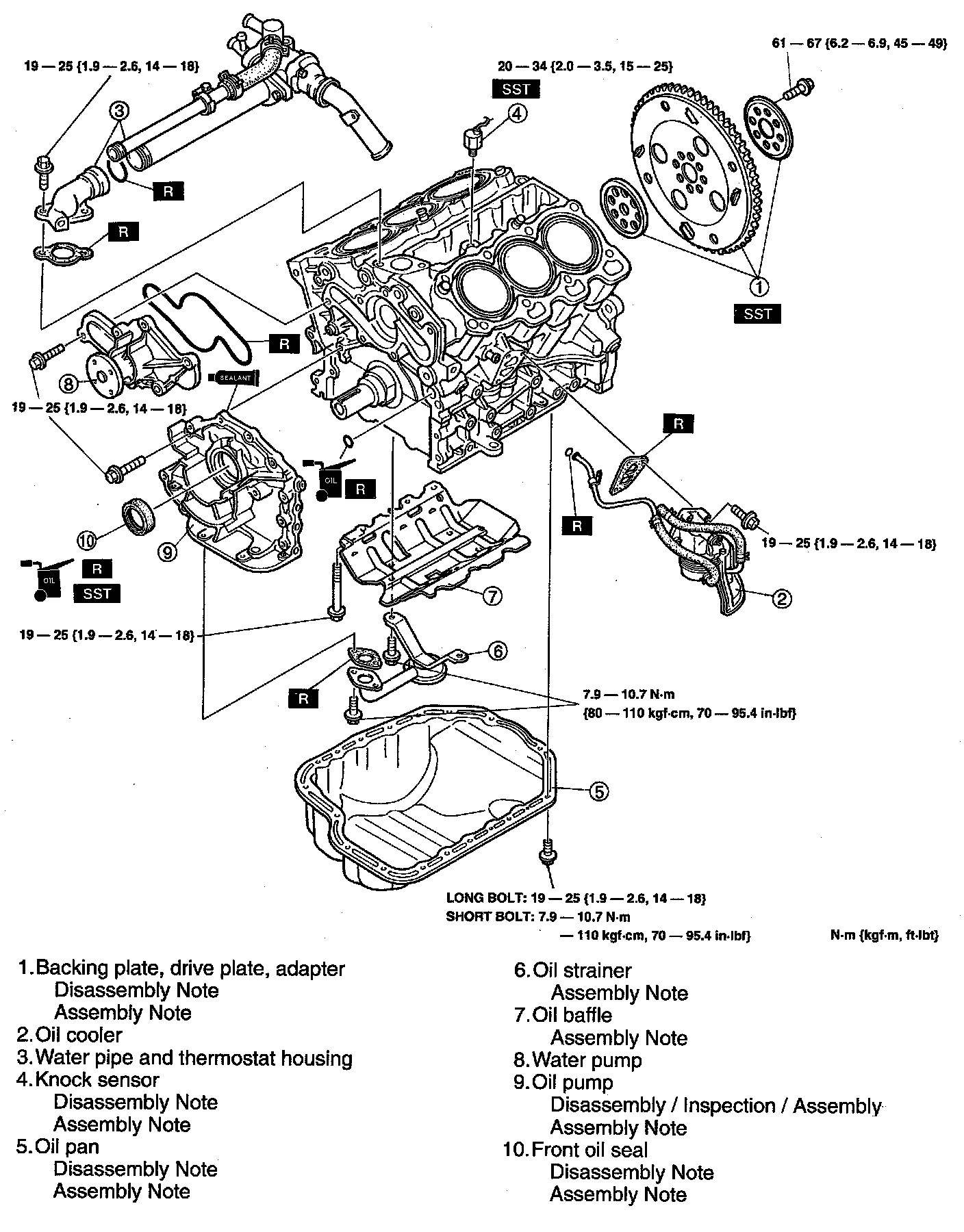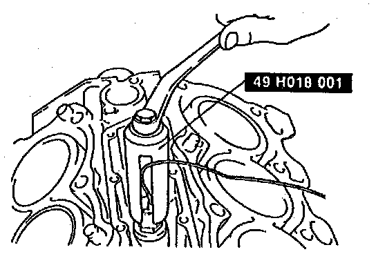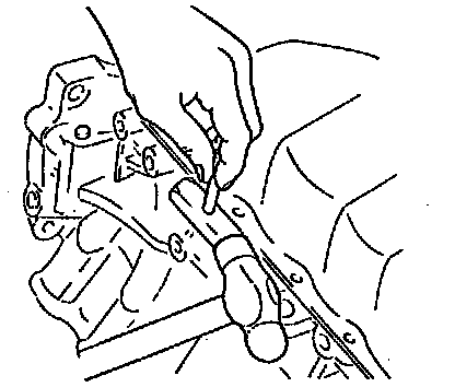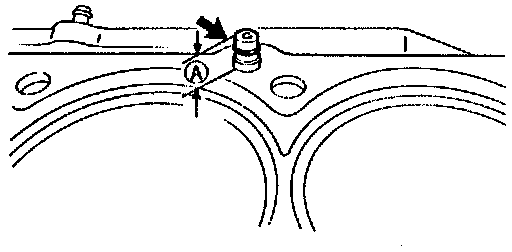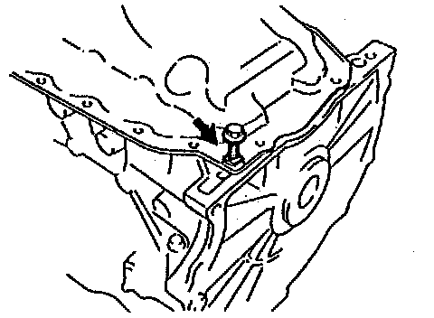 2. Turn a bolt into the special bolt hole as shown to make a small gap between the oil pan and the lower cylinder block.