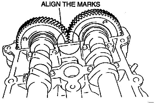 2. Install the camshafts so that the intake camshaft gear mark and exhaust camshaft gear mark align.