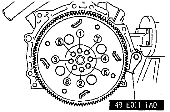 2. Remove the drive plate lock bolts in two or three steps in the order shown.