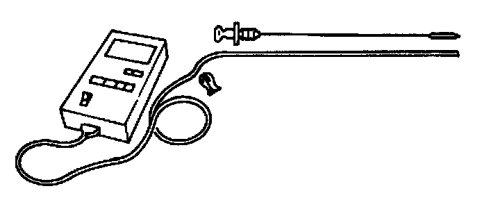 3. Adjust the length of the thermistor probe measure to measure the same as the dipstick and hold the probe with a paper holder. Insert into the filler tube and measure the temperature.