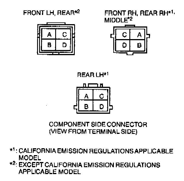2. Measure the resistance between heated oxygen sensor terminals C and D by using an ohmmeter.