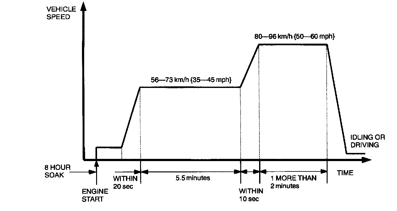 6. Drive vehicle at 56 - 73 km/h (35 - 45 mph) for 5.5 minutes.
