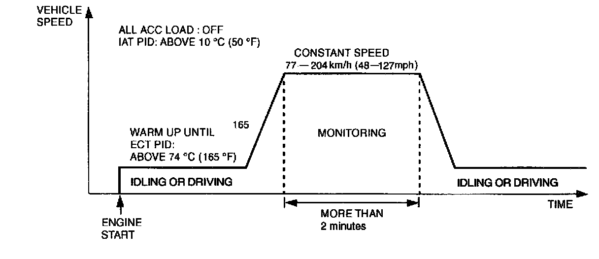 7. Accelerate to 80 - 96 km/h (50 - 60 mph) within 10 seconds and drive vehicle for at least 2 minutes.