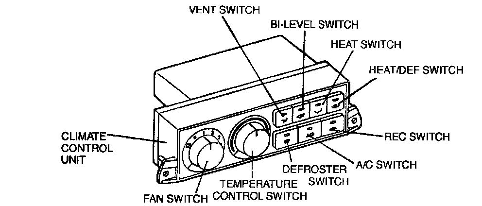 - The climate control unit controls air mixture, air intake, air flow mode and fan speed.