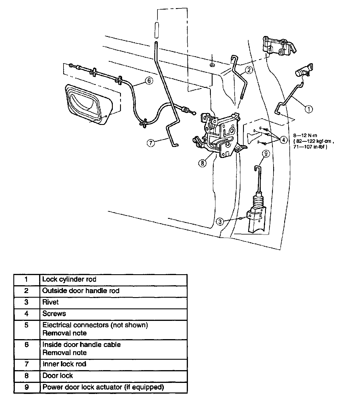 1. Disconnect the front door ajar warning switch and power door lock actuator connector, if equipped.
