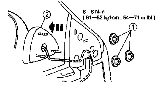 1. Remove the front door trim panel.2. Remove the outside mirror access water shield.