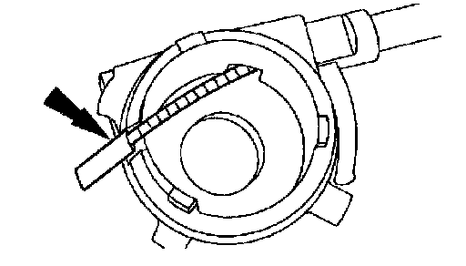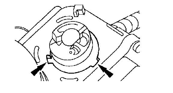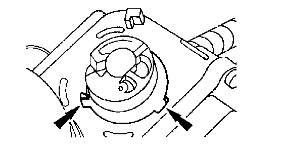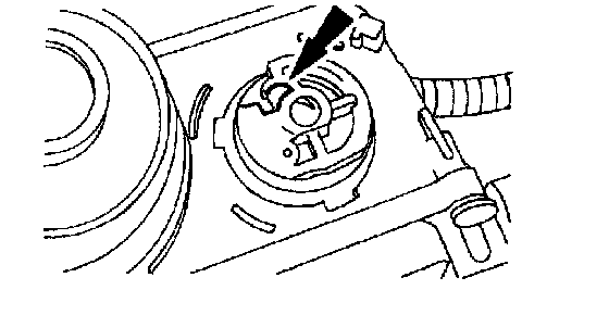 1. Depress the cruise control actuator cable cap tab inward and twist the actuator cap counterclockwise to remove.