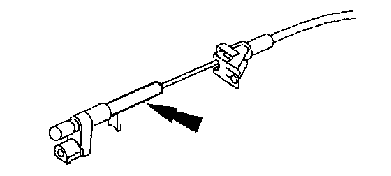 NOTE: Make sure the white indicator mark is visible on cruise control actuator cable for proper routing.