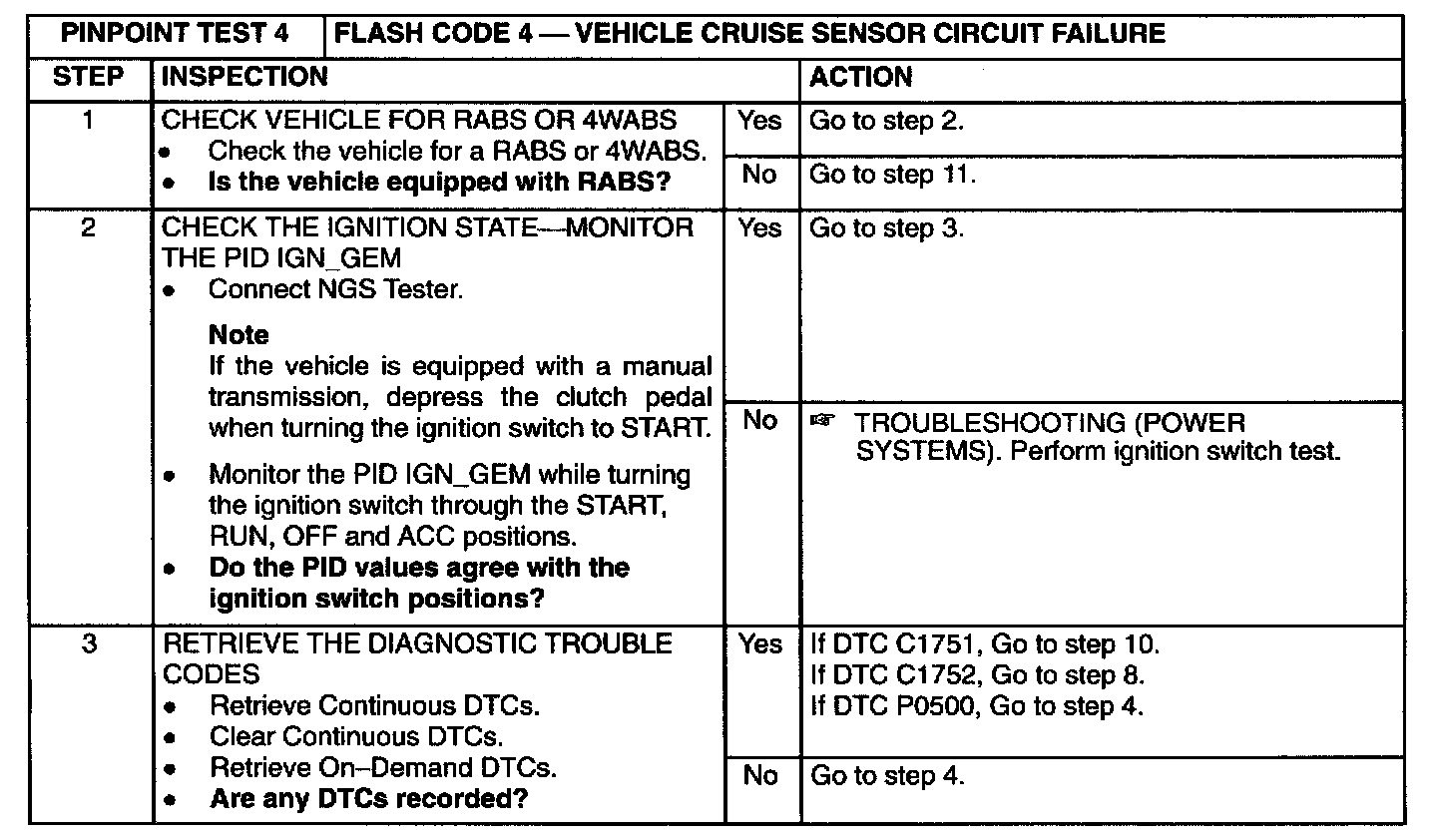 4: Flash Code 4 - Vehicle Cruise Sensor Circuit Failure