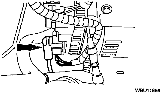 14. Disconnect the heater hoses at the inlet and outlet.