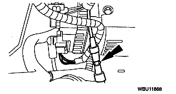 17. Disconnect the throttle body heater hose.