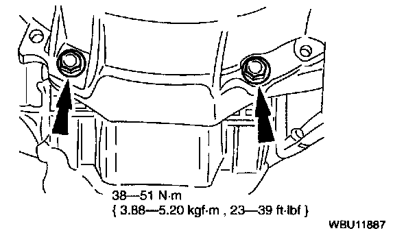 49. Remove the two upper transmission - to - engine bolts.