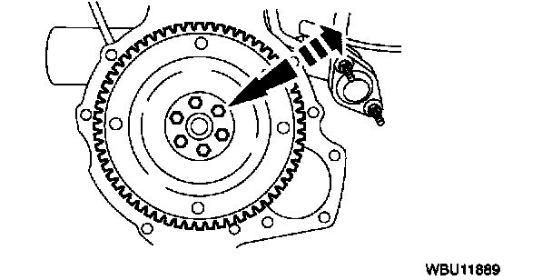Note: The torque converter nuts are accessed through the starter motor hole.