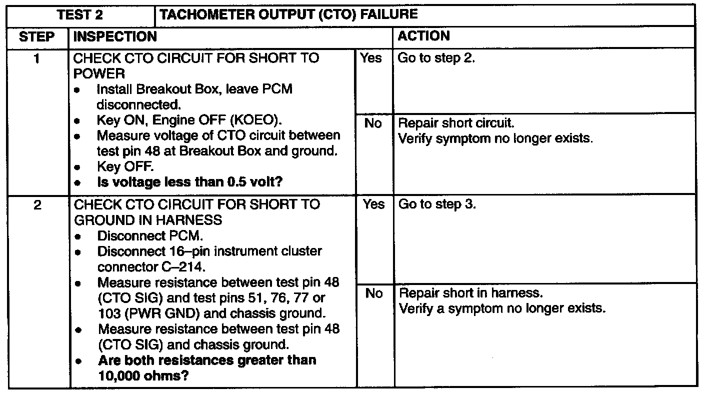 Test 2: Tachometer Output (CTO) Failure