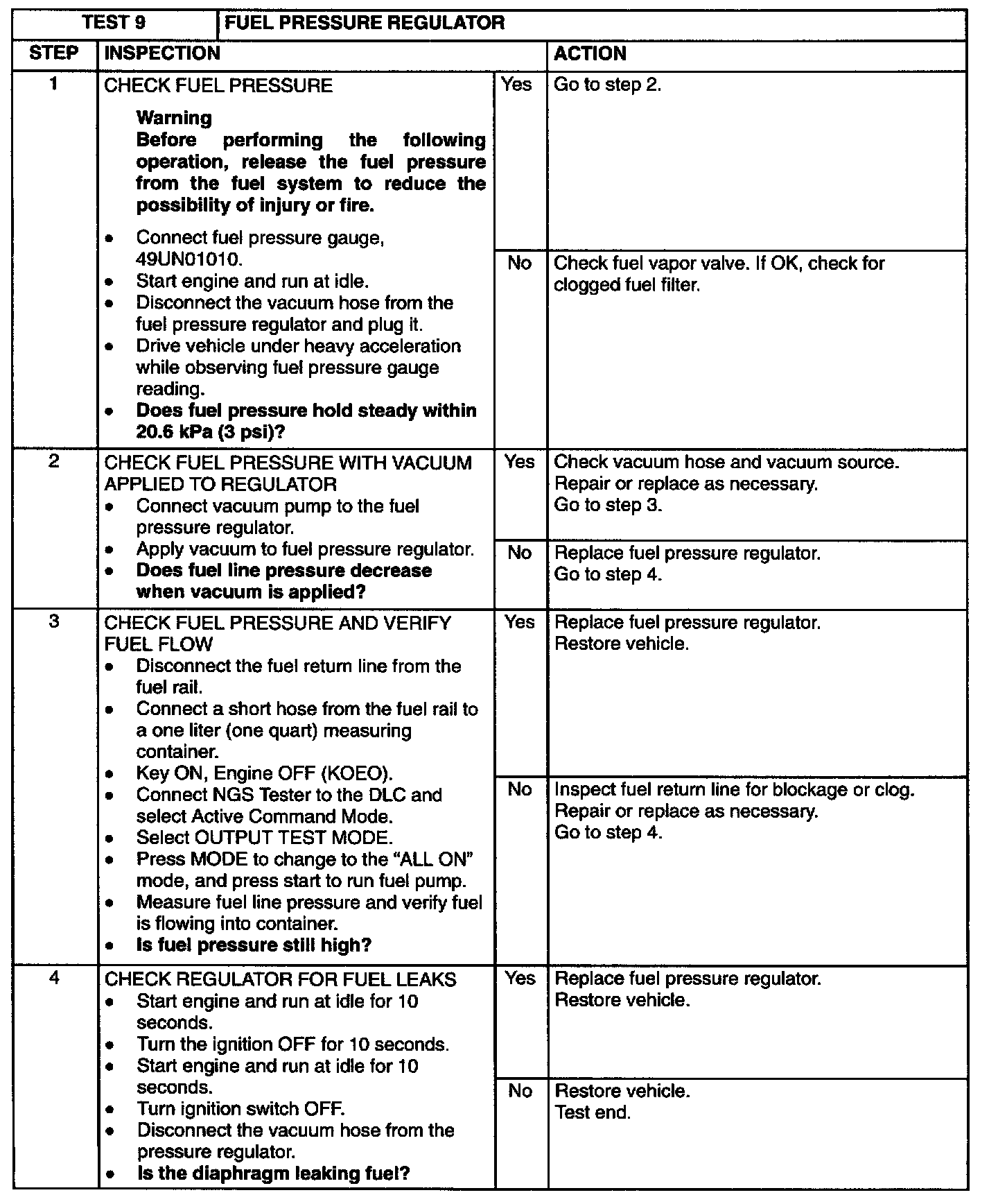 Test 9: Fuel Pressure Regulator