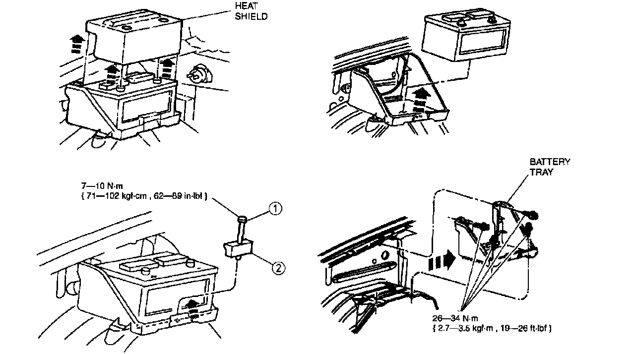 WARNING: When lifting a battery, excessive pressure on the end walls could cause acid to leak out through the vent caps, resulting in personal injury, damage to the vehicle or battery. Lift with battery carrier.