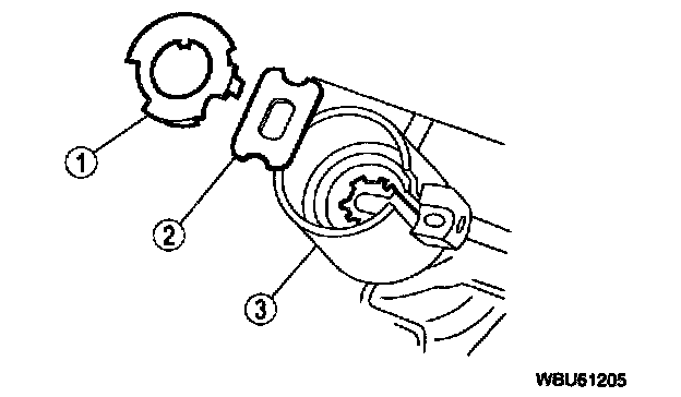 3. Press the lock cylinder release pin (3) while pulling out the lock cylinder.