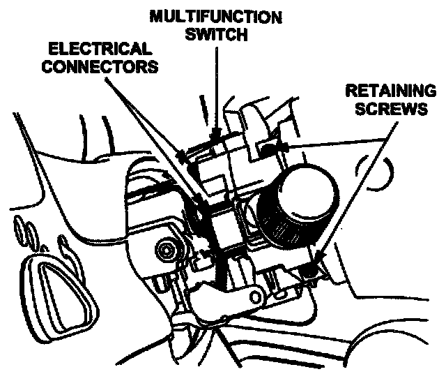 4. Remove the two (2) multifunction switch retaining screws, disconnect the electrical connectors, and remove the multifunction switch. Refer to the illustration.