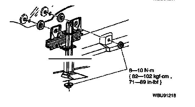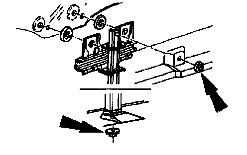 6. Loosen the center door glass run retainer. Remove the center door glass run retainer nuts.