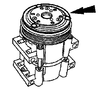 1. Place the A/C clutch field coil on the A/C compressor with the A/C clutch field coil electrical connector properly positioned.
