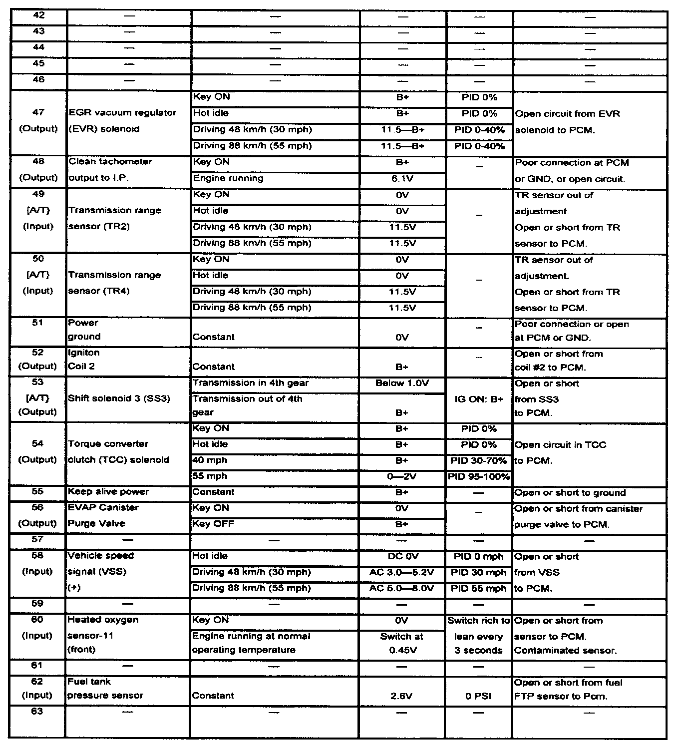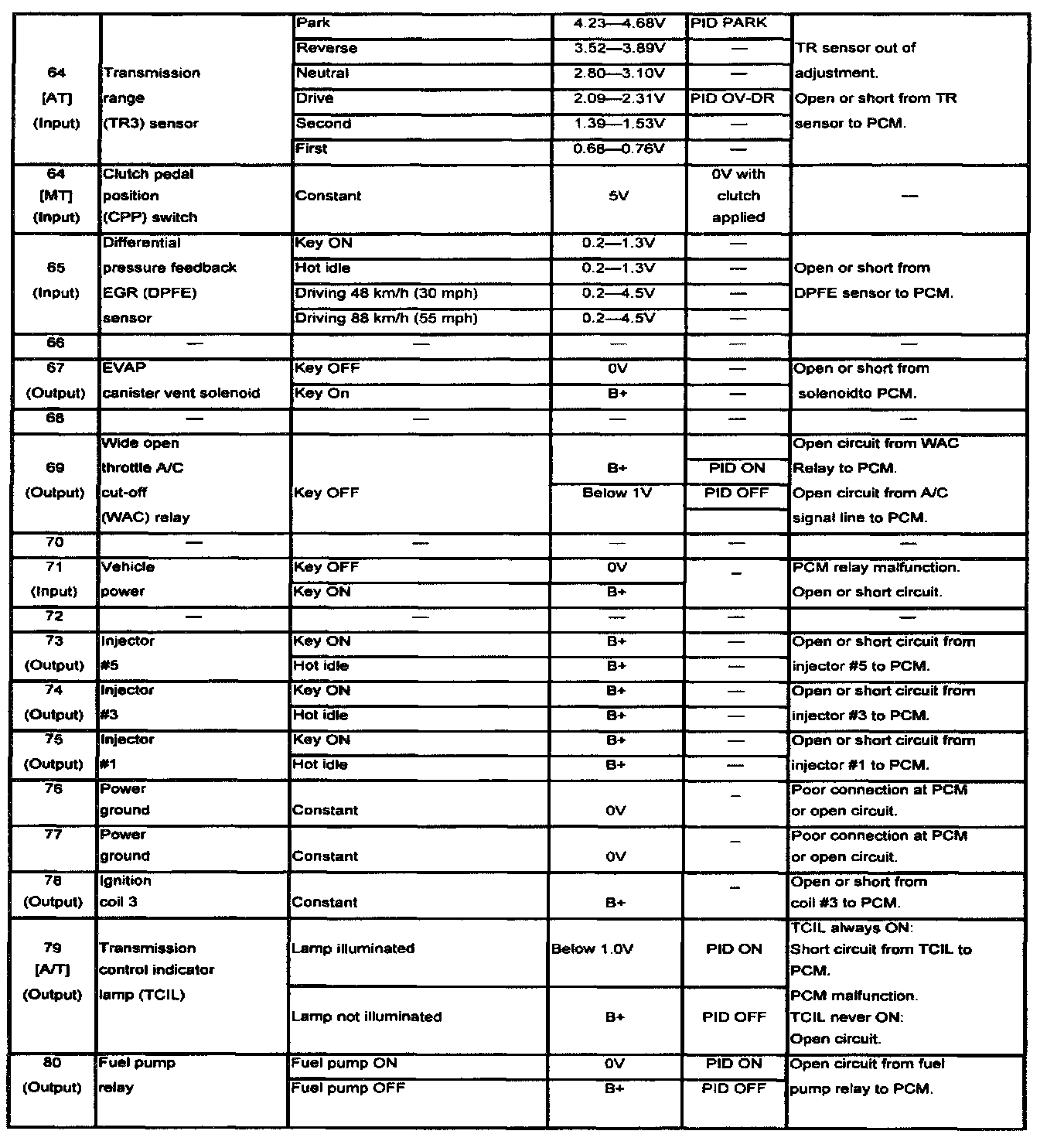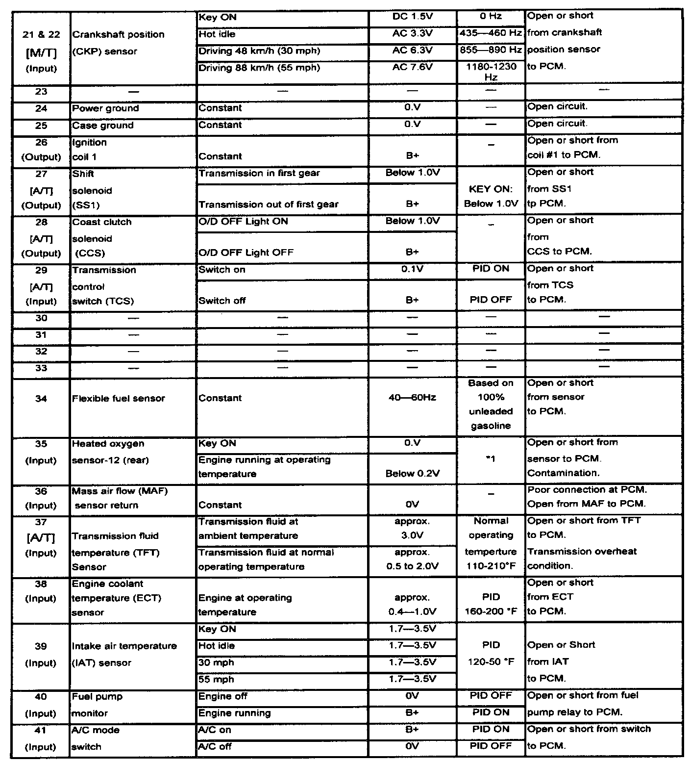 CAUTION:- The PCM terminal voltages vary with change in measuring conditions and vehicle conditions. Always carry out a total inspection of the input systems, output systems, and PCM to determine the cause of trouble. Otherwise, a wrong diagnosis will be made.