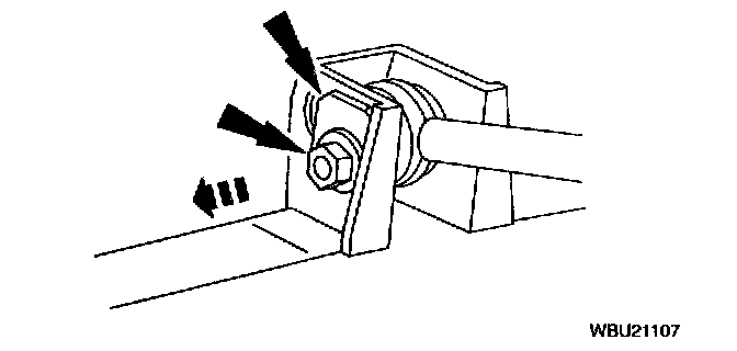 Note: The torsion bar adjusting bolt is coated with Loc-tite(R) that wears off after disassembly. If the torsion bar system is ever disassembled or the torsion bar adjusting bolt is ever removed, use a new torsion bar adjusting bolt when re-assembling.
