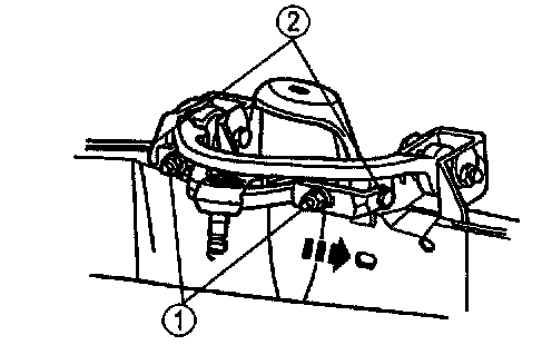 2. To decrease camber, move the front suspension arm bushing joint inboard equally.