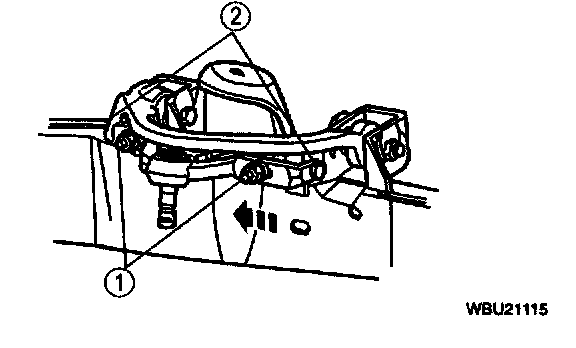 Note: A pry bar can be used between the front suspension arm bushing joint and the frame pocket to aid in moving the arm.