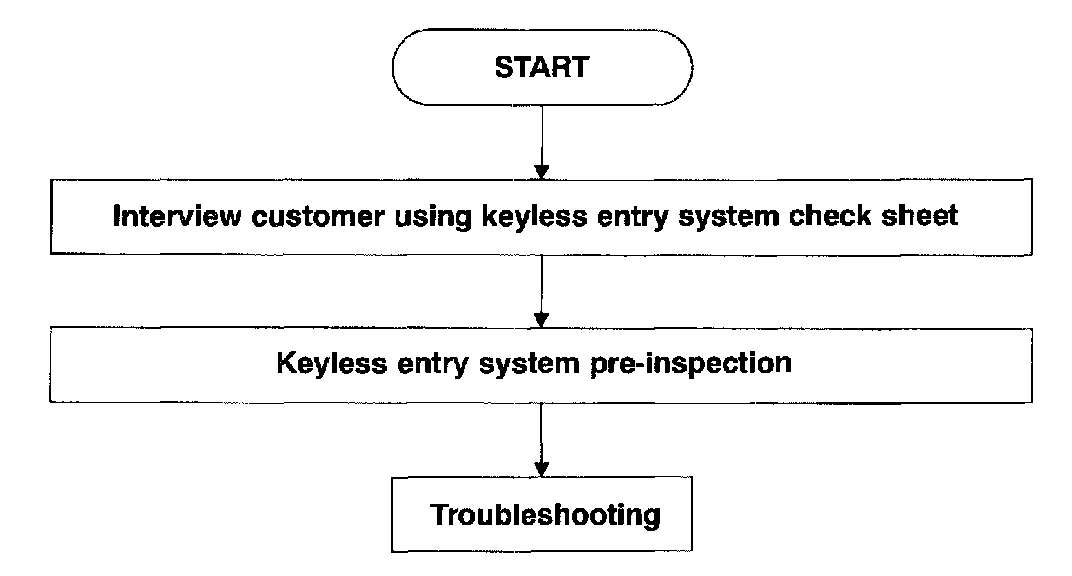 - Go to troubleshooting after identifying the specific malfunction by doing a keyless entry system preliminary inspection.