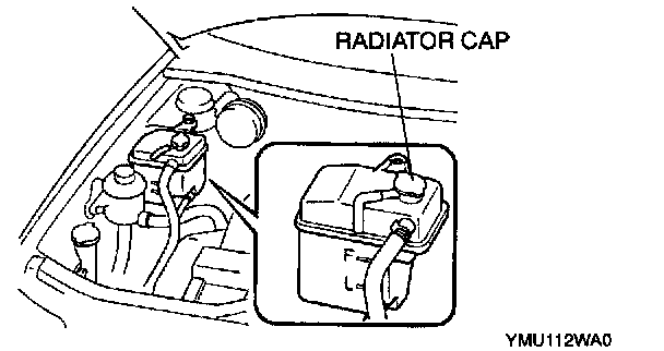 ^ If the engine coolant level is below L, remove the radiator cap and add coolant.