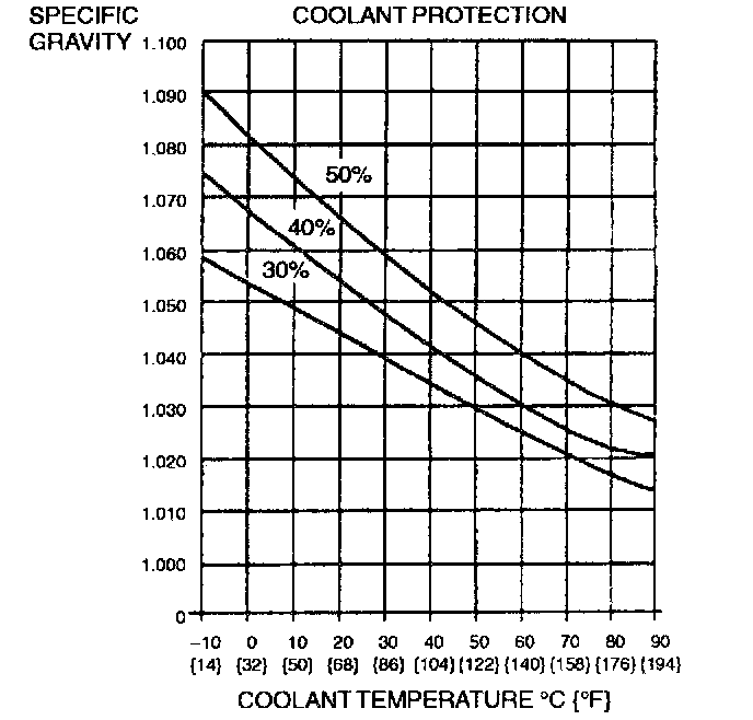 1. Measure the coolant temperature and specific gravity with a thermometer and a hydrometer.
