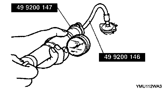 Caution: Applying more than 123 kPa (1.25 kgf/cm2, 17.8 psi) can damage the hoses, fittings, and other components, and cause leaks.
