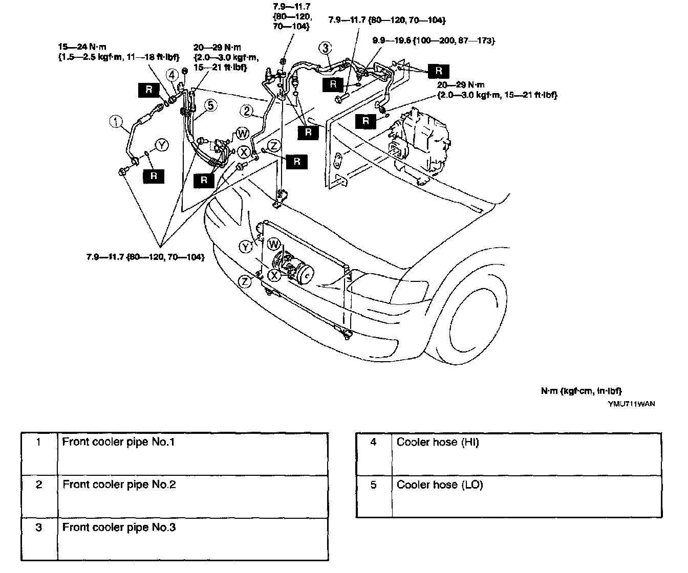 1. When installing a new cooler pipe or hose, add a supplemental amount of ND-OIL8 compressor oil from the inlet.
