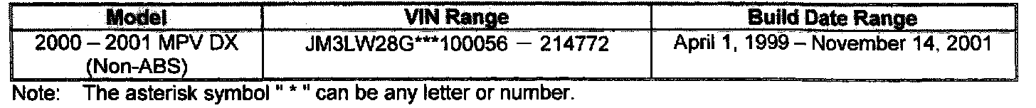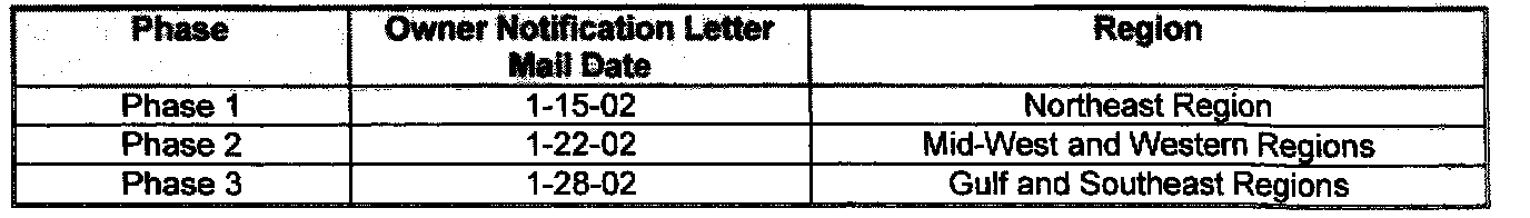 Mazda will notify customers by first class mail in three phases during January 2002, as shown.