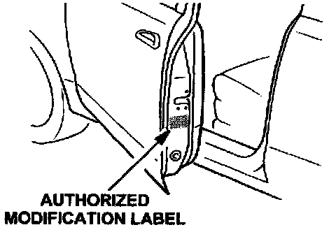 Complete an "Authorized Modification Label" with the recall number on it and affix it to driver's side door under the door latch. Refer back to illustration under "A. VEHICLE VERIFICATION PROCEDURE."
