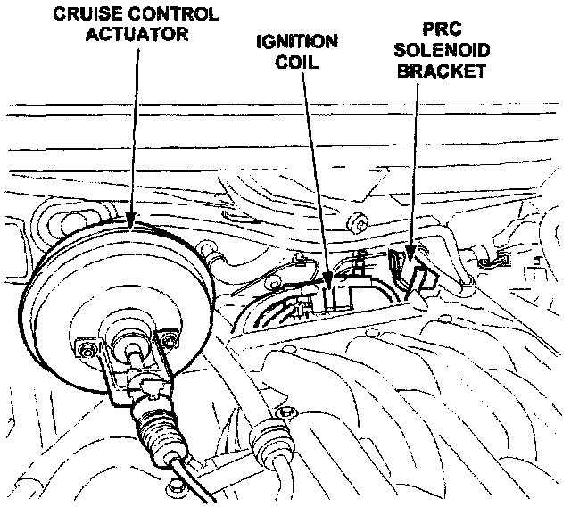 13. Reinstall the Ignition Coil, Cruise Control Actuator, PRC solenoid and negative battery cable.