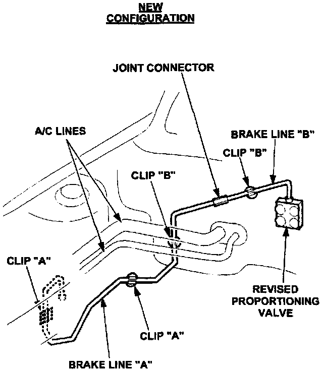 5. Install brake line "B" into the revised proportioning valve and finger tighten the fitting.