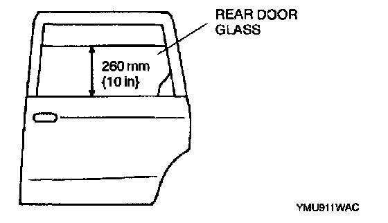 1. Lower or raise the rear door glass so that the distance from the top of the rear door glass at the rear end to the upper part of the front beltline molding is 260 mm {10 in}