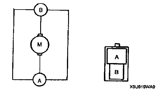 Connect battery positive voltage to the motor terminal B and ground to the motor terminal A.