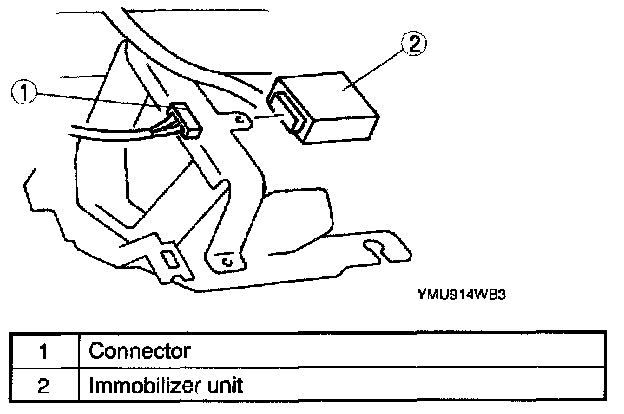 CAUTION: After replacing the immobilizer unit with a new one, the engine cannot be started without reprogramming the ID number of the keys and the code word of the new immobilizer unit. Input the ID number and code word.