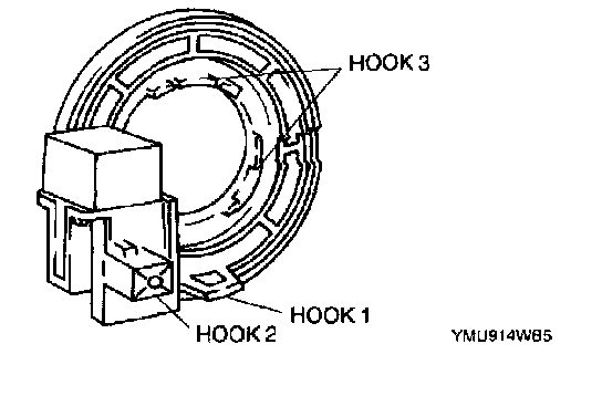 2. Install the hook 2 to the steering lock.