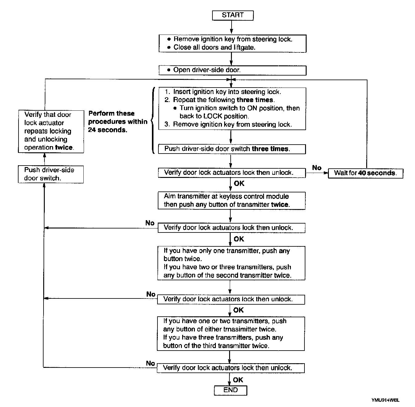 When programming the ID code into the keyless control module, verify that other transmitters are not being operated in the vicinity.